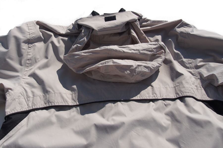 また、襟部分のジップを開けるとフードをお出しいただけますので、小雨の時にも安心です。