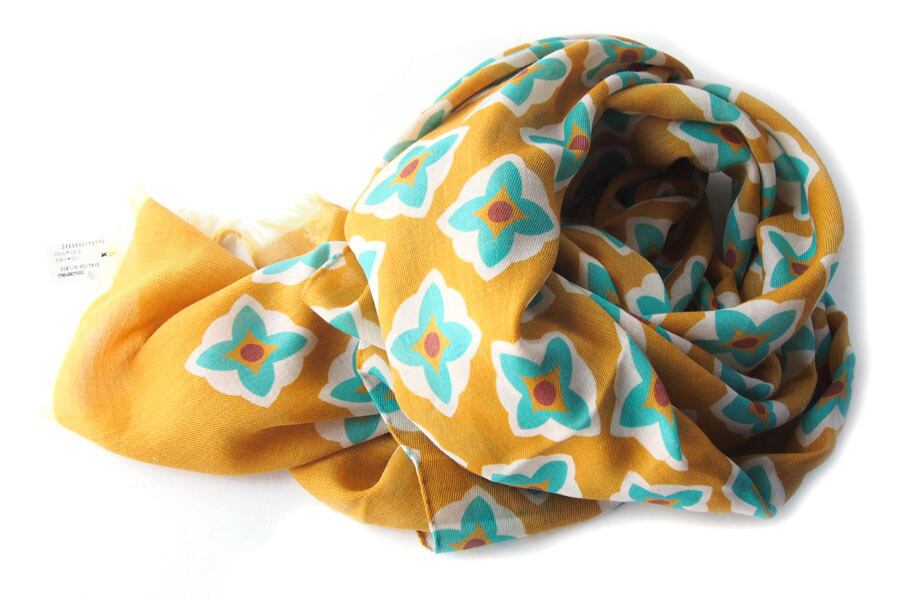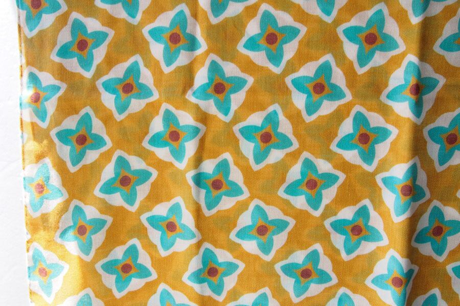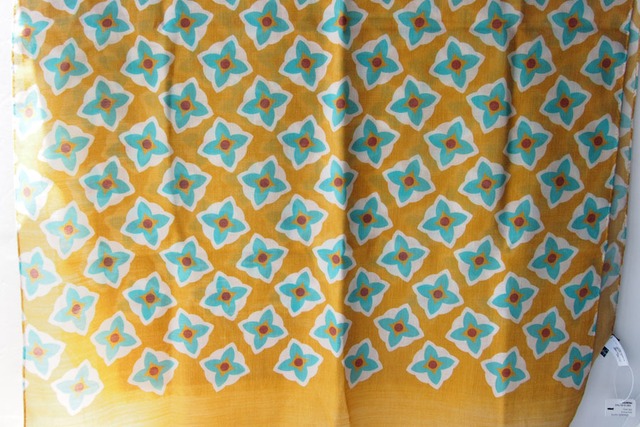 デザインは、マスタードをベースに、ブルーを基調としたカラーのフラワー柄。